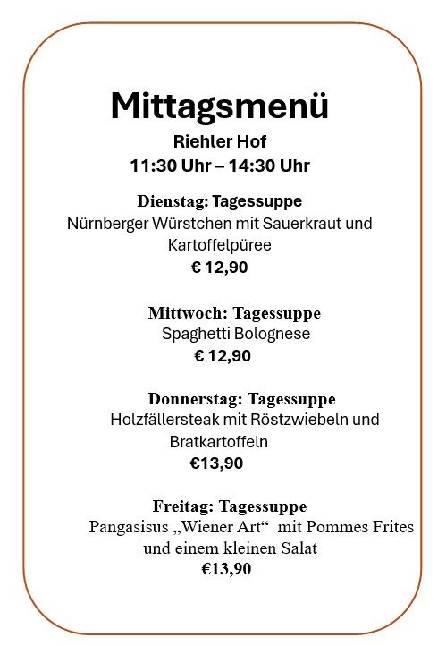 Mittagsmenüs inclusive Tagessuppe